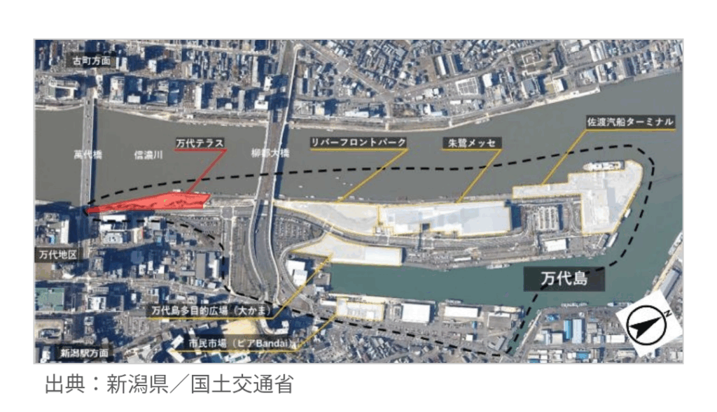 国土交通省港湾局は2025年8月15日、新潟港において「港湾環境整備計画制度(通称:みなと緑地PPP)」を活用した取り組みが正式に始動したことを公表しました。新潟県は、新潟港万代島地区の港湾緑地「万代テラス」に関する環境整備計画を認定し、株式会社ピーエイを事業者として位置付けました。これにより、同制度の認定案件は神戸港、大阪港に続き全国で3例目となります。